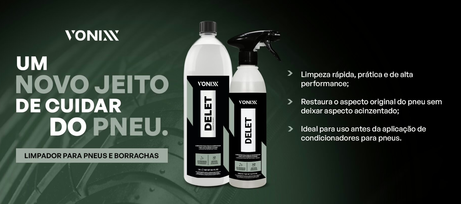 O Delet é um limpador automotivo de alta performance, formulado para remover sujeira pesada de pneus e borrachas, devolvendo a aparência original sem deixar aspecto acinzentado. Ideal para preparar os pneus antes da aplicação de condicionadores, garantindo melhor performance e durabilidade dos produtos de manutenção.