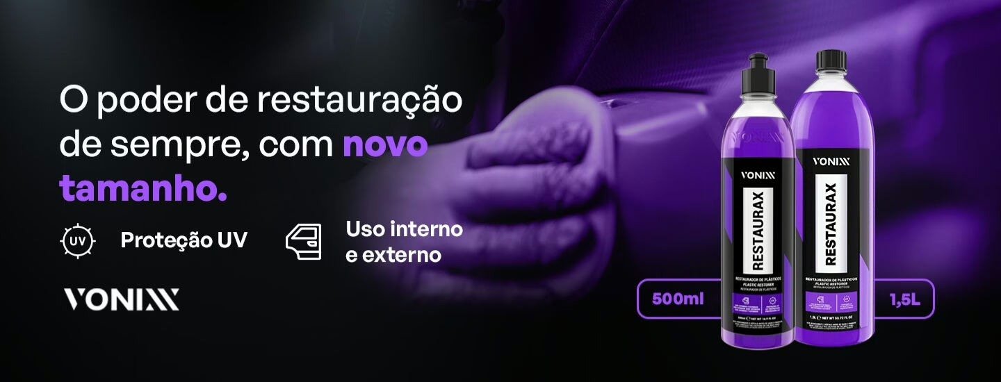 O Restaurax Vonixx 500ml é um restaurador de plásticos automotivos desenvolvido para devolver o aspecto de novo a superfícies como para-choques, painéis, laterais de portas e capotas marítimas. Sua fórmula contém polímeros especiais que renovam, protegem contra a ação do tempo, proporcionam brilho e evitam a degradação precoce do material.