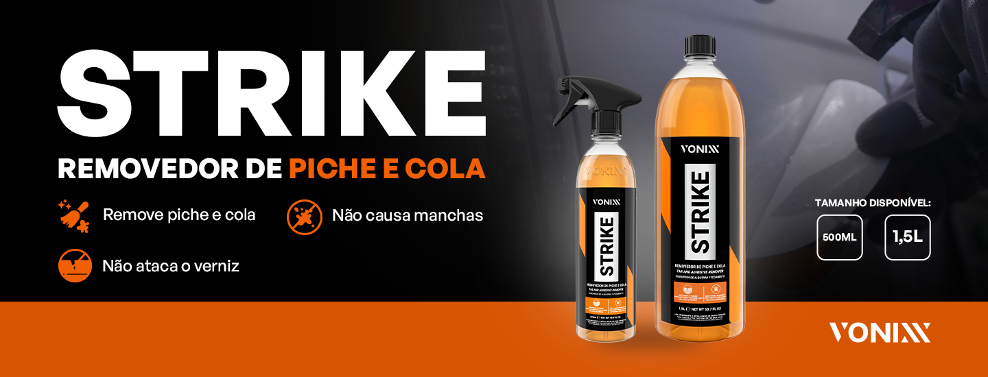 O Strike Vonixx 500ml é um removedor desenvolvido para eliminar com eficiência piche, colas de adesivos, etiquetas e sujeiras incrustadas, sem agredir o verniz do veículo. Sua fórmula balanceada é pronta para uso, prática e segura, garantindo excelentes resultados em poucos minutos.